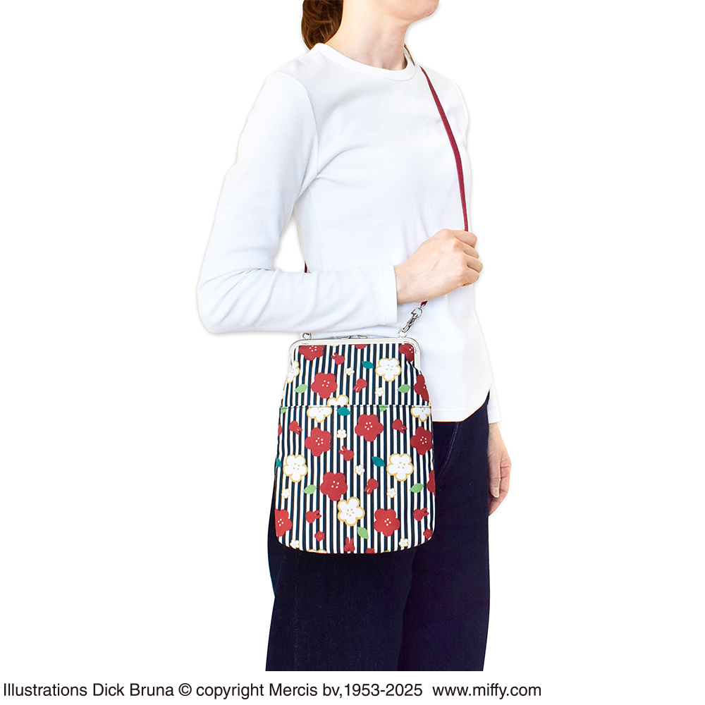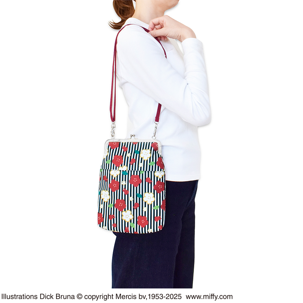商品名 : ミッフィー御朱印帳ポーチ(がま口)縞梅